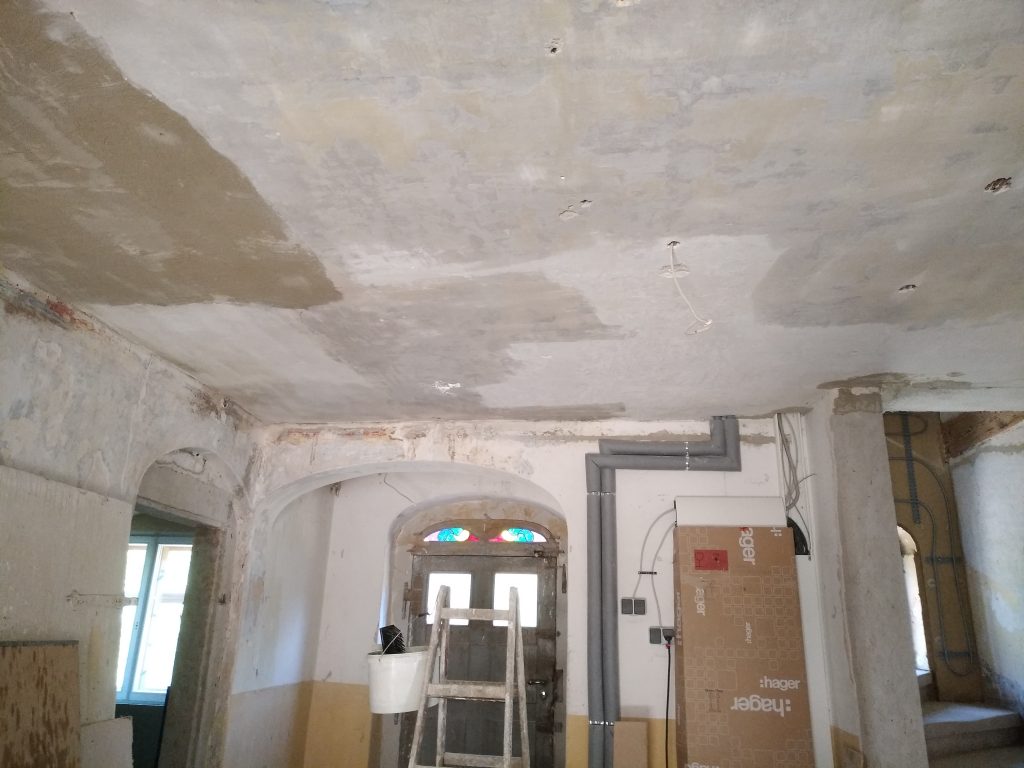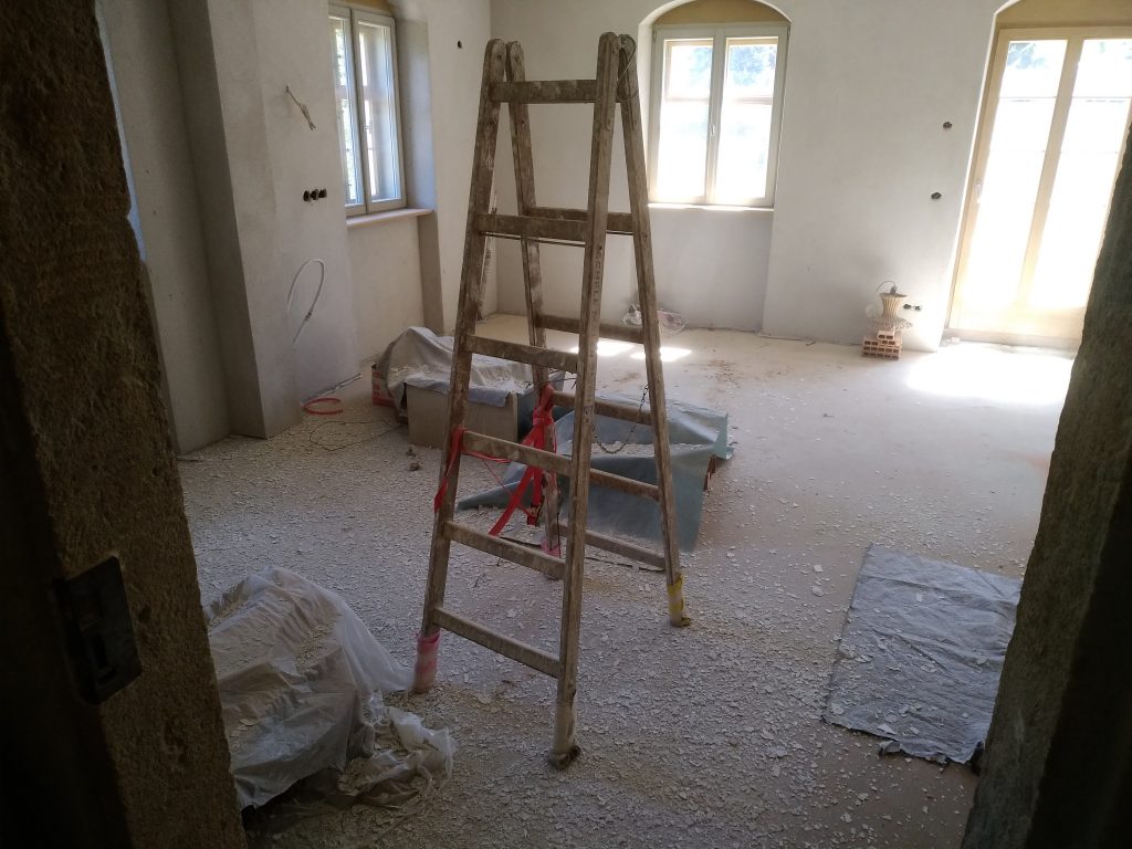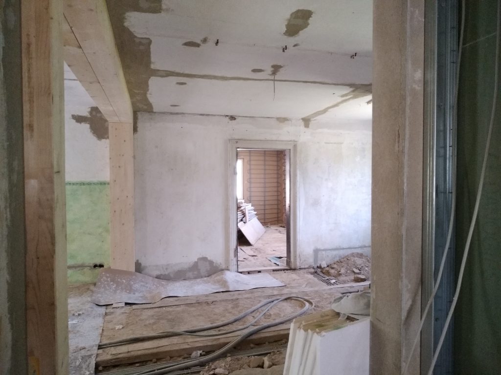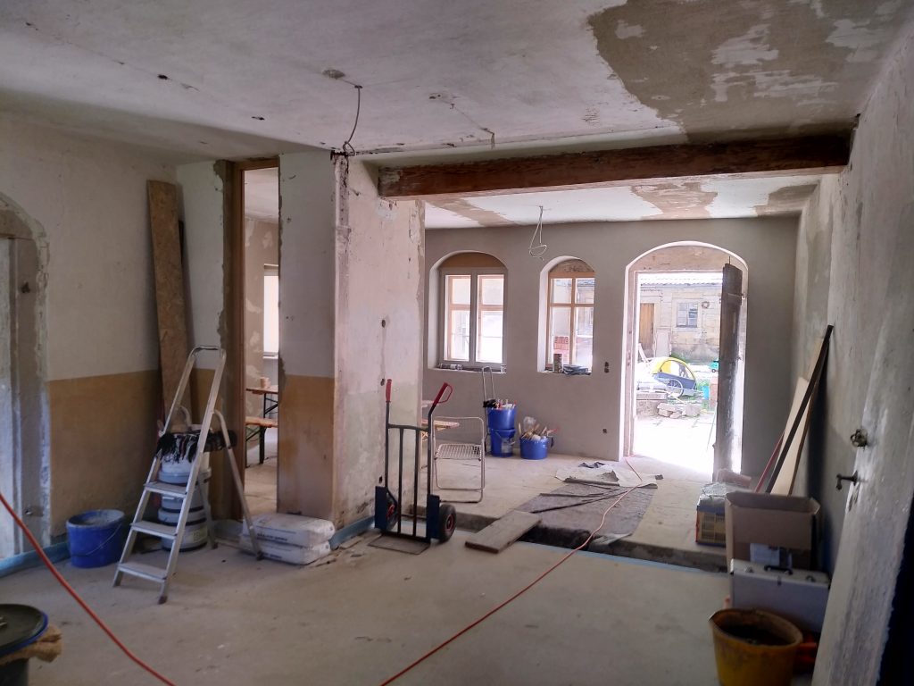 Insgesamt bröckelte es an allen Ecken und Enden, von Dach bis Fußböden wurde vieles erneuert, doch Erhaltbares erhalten. Interessant ist der Einbau einer Wandheizung in den oberen Etagen, die EG-Räume erhielten Fußbodenheizung.
